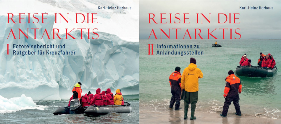Das aus zwei Teilen bestehende Buch „Reise in die Antarktis“ kann man als Allrounder innerhalb der Reiseliteratur über die Antarktis bezeichnen. Es möchte seine Leser mit großformatigen Fotos, detailliertem Kartenmaterial und wertvollen Informationen bei der Reisevorbereitung unterstützen und während der Reise in die Antarktis begleiten. Dafür ist der Autor Karl-Heinz Herhaus mehrfach ins atlantische Südpolarmeer gereist und hat umfangreiche Informationen, Bild- und Kartenmaterial zusammengetragen. Über 300 Fotos von den Falklandinseln, Südgeorgien, Süd-Orkneys, den Süd-Shetlands und der Antarktischen Halbinsel zeigen dem Leser eine beeindruckende Welt und wecken Reiseträume. Antarktiserfahrene Schiffskapitäne, Lektoren, Fotografen und Schiffsärzte haben mit Ratschlägen, Fachbeiträgen und Fotos zur Vollständigkeit des Buches beigetragen. Hierzu gehören ausführliche Beschreibungen unterschiedlicher Tierarten und faszinierende Berichte über dramatische Expeditionen zur Entdeckung des eisigen Kontinents. In Kooperation mit dem Umweltbundesamt in Dessau beschreibt das Buch detailliert die für Reisende wichtigen Verhaltensregeln in der Antarktis.